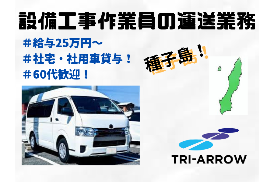 - 種子島での設備工事作業員の運送業務及び庶務業務