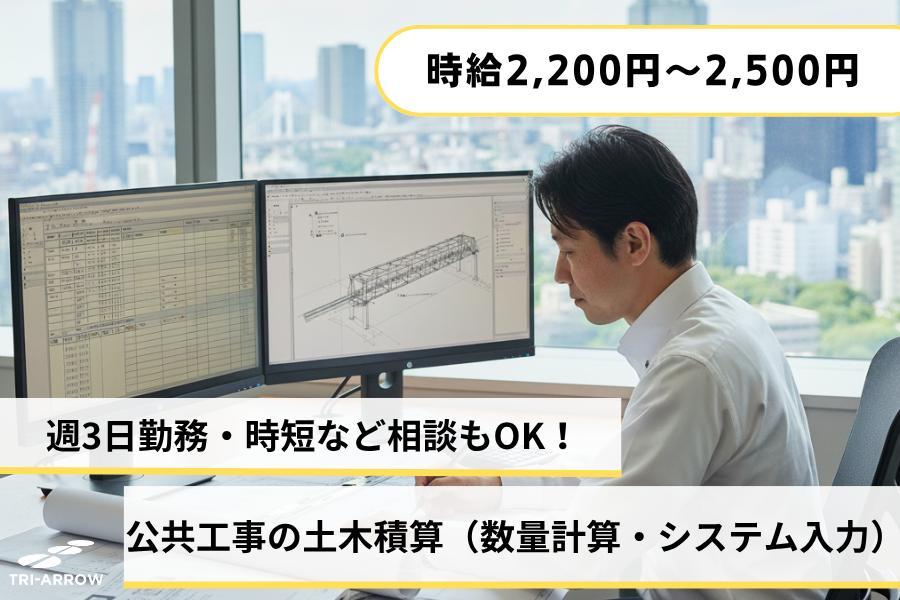 【5月スタート】週3日勤務・時短など相談OK!公共工事の土木積算・数量計算のお仕事