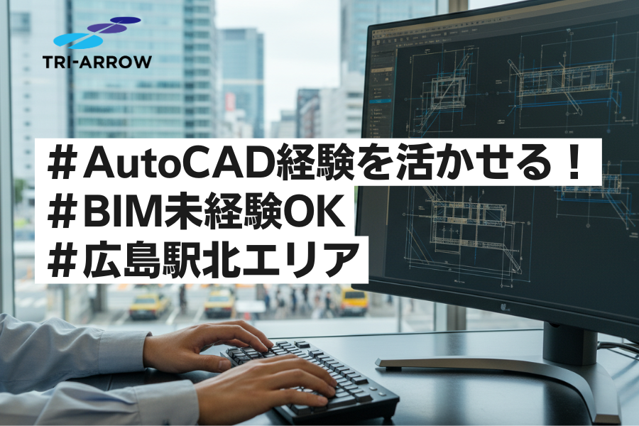 AutoCAD経験を活かして即戦力として活躍!施工図作成。BIM未経験OK!広島駅北エリア!土日祝休み!