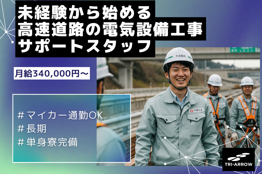 キープに追加 【山形県山形市】【単身寮完備】未経験者歓迎!高速道路の電気設備工事サポートスタッフ(施工管理補助)